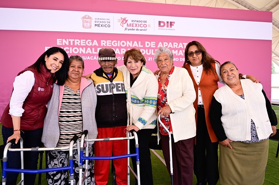 CHIMALHUACÁN, Estado de México.- Como parte de su compromiso de atender las necesidades más apremiantes de la población mexiquense vulnerable, la Gobernadora del Estado de México, Delfina Gómez Álvarez entregó 919 aparatos funcionales para personas adultas mayores de 27 municipios de la región oriente de la entidad, a fin de garantizar su inclusión y mejorar su calidad de vida, así como impulsar su autonomía e independencia.