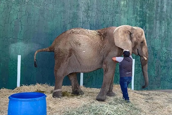 Luego de una visita de especialistas, se confirmó que la ejemplar no contaba con las instalaciones adecuadas para su bienestar, por estar enjaulada en un corral hecho con fierros viejos y oxidados, y sin una charca de agua y lodo, que son fundamentales para la hidratación de su piel.
