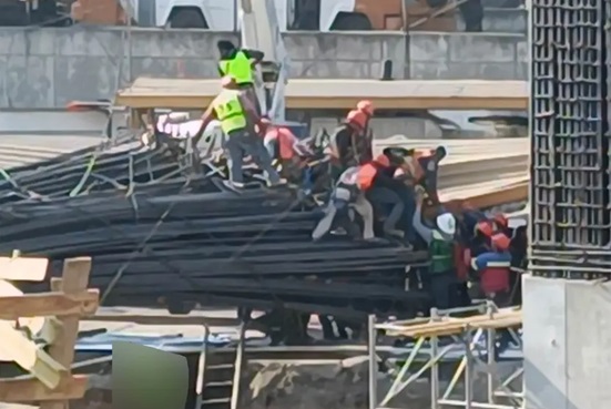 La caída de una estructura aparentemente del Trolebús Elevado que se construye en el Centro de Transferencia Modal Santa Martha dejó como saldo, al menos, cinco personas lesionadas, al parecer trabajadores de la obra.