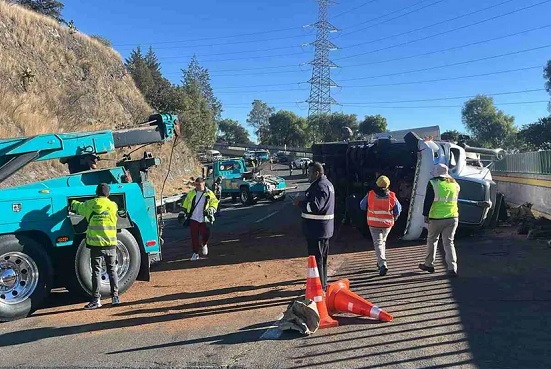 La volcadura de un tráiler con 25 toneladas de cartón originó la movilización de los equipos de emergencia en el kilómetro 25 de la autopista México-Cuernavaca con dirección hacia Morelos.