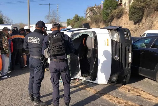 Una camioneta de transporte público sufrió un aparatoso accidente al volcar en el boulevard Luis Donaldo Colosio, perímetro del municipio de Naucalpan en el Estado de México, reportes preliminares señalan que hay varios pasajeros heridos.