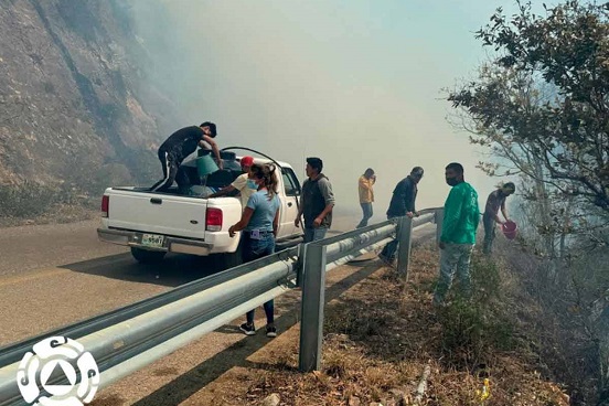 Derivado de la gravedad del siniestro, incluso la ciudadanía local ha estado llevando agua en tinacos y realizando brechas corta fuegos.