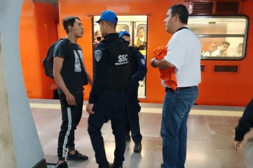 Ya en la bajada de las escaleras del puente, el muchacho impulsó a otro con los brazos hacia el suelo y este le soltó un golpe, aunque no le atinó. Pero otro viajero también cayó junto con él, pero éste sí alcanzó a darle un golpe en la cara al causante de su caída.