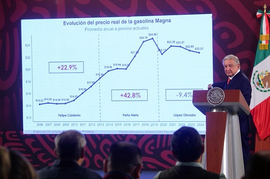 Pemex producía 300 mil barriles diarios de gasolina, diésel y turbosina en noviembre de 2018, un mes antes del inicio de esta Administración, pero en 2023 cerró en 655 mil.