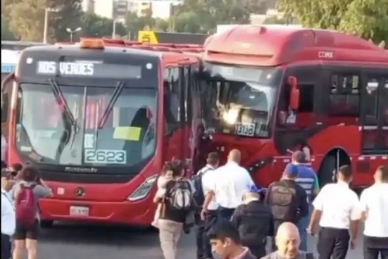 Videos que circulan en redes sociales dan cuenta de cómo fue el choque entre las unidades del Metrobús en el paradero de Indios Verdes.
