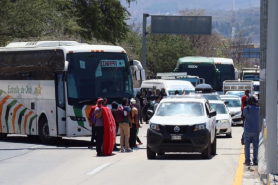 Este bloqueo intermitente en la Autopista del Sol se realizó colocando dos autobuses en ambos sentidos de la carretera, además de que algunos integrantes de esta escuela normal estaban acompañados por algunas mantas y cartulinas.