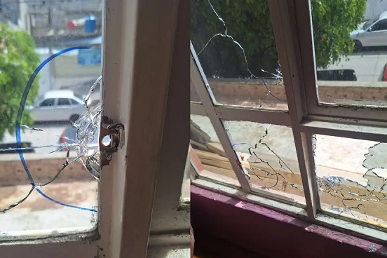 Los impactos quedaron incrustados en el portón principal en las ventanas de la planta superior donde estan las recamaras.