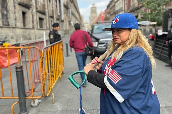 Con un letrero con la leyenda: “Presidente, soy beisbolista, ¿me deja pasar?”, la madre buscadora lamentó que el presidente mire a las madres de México que han enfrentado la pérdida de un familiar como “oposición o politiquería”. Ayer acudió con una pala que usa para la búsqueda de sus hijos.