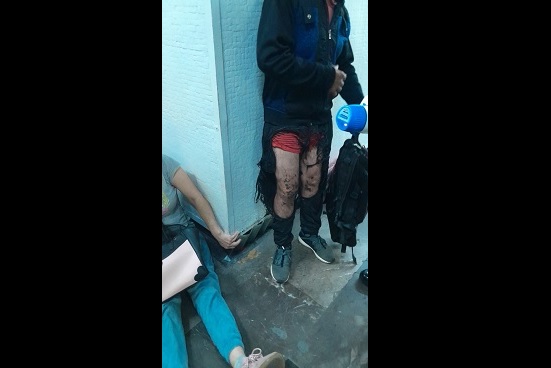 En tanto, se hizo pública una fotografía en donde se observa a un hombre parado, con el pantalón totalmente quemado, mientras otra persona se encuentra en el piso.
