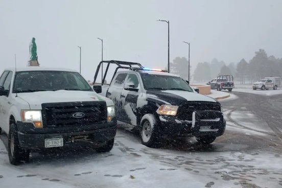 Reportó la caída de nieve en 10 municipios por paso de la Octava Tormenta Invernal y que se dio el cierre de los tramos carreteros Puerto Los Lobos-Largo Maderal, Guachochi- Nonoava, Guachochi- Creel, Guachochi-Balleza y San Rafael-Bahuichivo.
