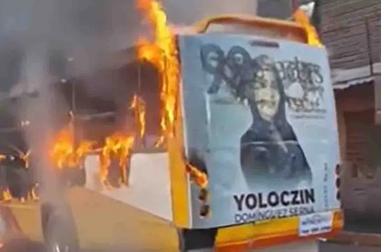 De acuerdo a versiones de testigos, el camión venía del centro de la ciudad, hombres armados lo detuvieron, bajaron a las personas que venían en el camión y rociaron el vehículo con gasolina para después prenderle fuego.