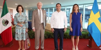 Recibe el gobernador Mauricio Vidal Dosal a los reyes de Suecia en su llegada a Yucatán