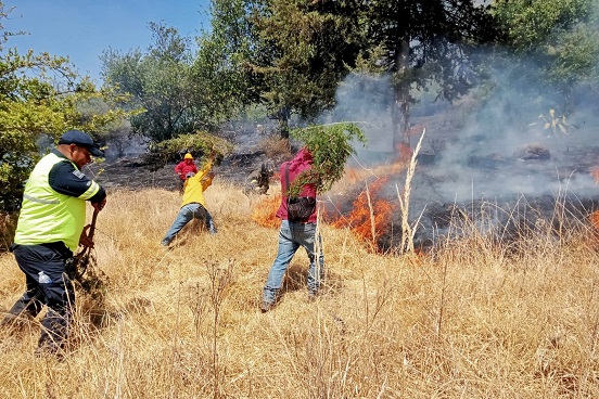 Mediante brechas cortafuego, tierra y humedad en el pasto seco se logró mitigar el incendio, no obstante se tiene registrado que 10 hectáreas aproximadamente se consumieron.