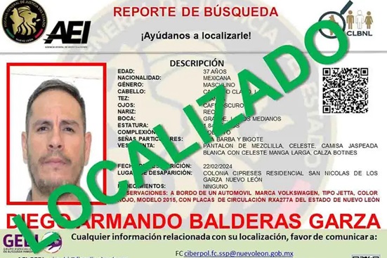 El más reciente es Diego Armando Balderas Garza, quien se encontraba desaparecido desde el 22 de febrero del presente año. La última vez fue visto en la colonia Cipreses Residencial en el municipio de San Nicolás de los Garza.