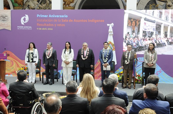 TOLUCA, Estado de México.- El Consejero Jurídico del Estado de México, Jesús George Zamora, asistió con la representación de la Gobernadora Delfina Gómez Álvarez, al Primer Aniversario de la instalación de la Sala de Asuntos Indígenas, acto que fue encabezado por el titular del Poder Judicial, Ricardo Sodi Cuellar, evento en el que también estuvo Juan Carlos González Romero, Secretario de Bienestar estatal.