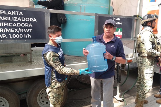En este contexto, la Secretaría de Marina instaló dos plantas potabilizadoras, con el fin de apoyar a la población afectada; una a un costado del Parque San Lorenzo, ubicado en Calle San Lorenzo S/N Colonia Del Valle, con capacidad de producir 1,000 litros de agua por hora; y otra en el Parque Nápoles, ubicado en Calle Pensilvania S/N esquina Alabama, Colonia Nápoles, con capacidad de 15,000 litros de agua por hora.