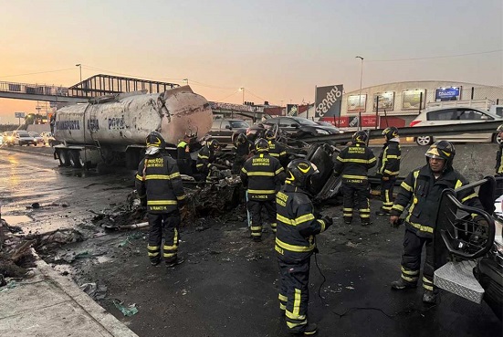 Elementos del Heroico Cuerpo de Bomberos señalaron en redes sociales que continúan trabajando para retirar la pipa siniestrada en los carriles laterales del Circuito Interior.