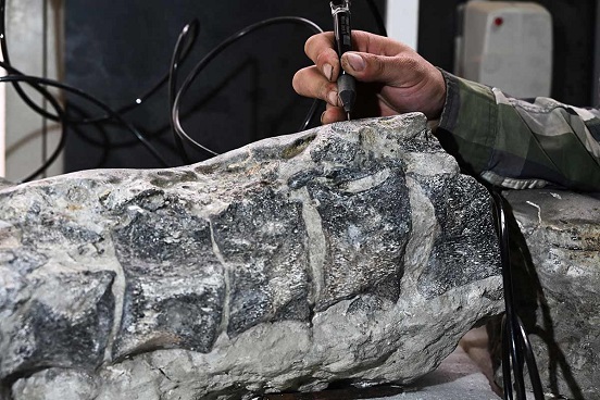 Hemos encontrado elementos desde la cola hacia el dorso y algunos elementos del cráneo. Sin embargo, todavía estamos descubriendo qué es lo que hay dentro de estos bloques», detalla el paleontólogo Héctor Ortiz.