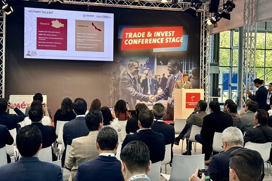 En este espacio, uno de los más importantes del mundo, integrantes de la delegación de la Secretaría de Desarrollo Económico del Estado de Oaxaca (Sedeco), su similar de Veracruz y de los consorcios ganadores de los Polos de Desarrollo para el Bienestar (Podebis), presentaron el proyecto del CIIT, las plataformas logística-multimodal e industrial, el desarrollo de los puertos de Salina Cruz y Coatzacoalcos, las ventajas competitivas, incentivos fiscales y proyectos estratégicos relacionados.