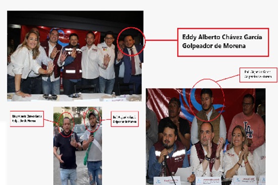 Los golpeadores son Eddy Alberto Chávez García, Raúl Alejandro García Ortega, Brandon Saúl Chávez García, Iván Daniel Chávez García, Pablo Fuentes, Gerardo Vaca y el ex diputado Miguel Ángel Abadía Pardo, quienes por órdenes de Sebastián Ramírez y el candidato Paulo García, se han dado a la tarea de “cazar” a Rubio en eventos para intentar golpearlo ante vecinos.