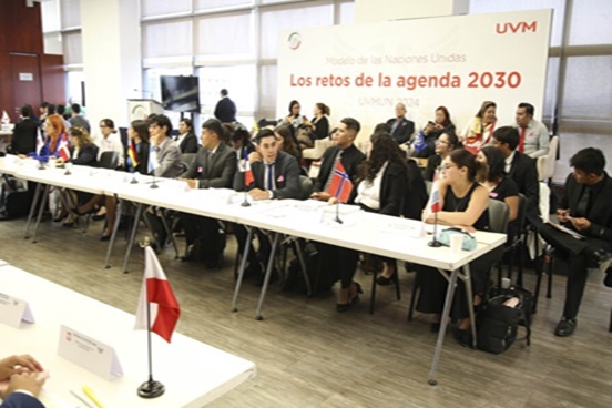 En el segundo día de actividades del foro “Modelo de las Naciones Unidas UVMUN 2024”, los estudiantes de la Universidad del Valle de México replicaron el modelo de Naciones Unidas, para analizar y debatir temas de índole global en materia de seguridad, comunidades inclusivas y refugiados.