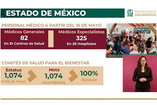 Como parte de la implementación de IMSS-Bienestar en el Estado de México, cuya incorporación fue impulsada por la Gobernadora Delfina Gómez Álvarez, el Director General del IMSS indicó que en la entidad mexiquense están ya instalados al cien por ciento los Comités de Salud para el Bienestar del programa “La Clínica es Nuestra”.