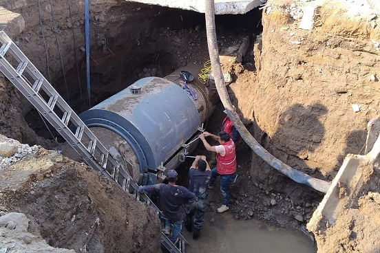 Después de excavar para localizar la fuga, se logró contener el escurrimiento en ambas y en este momento se encuentran en la última fase de reparación con la colocación de una silleta tipo Zeta en la tubería de 42 pulgadas de diámetro para Ecatepec y una tipo Concha para Tultitlán.