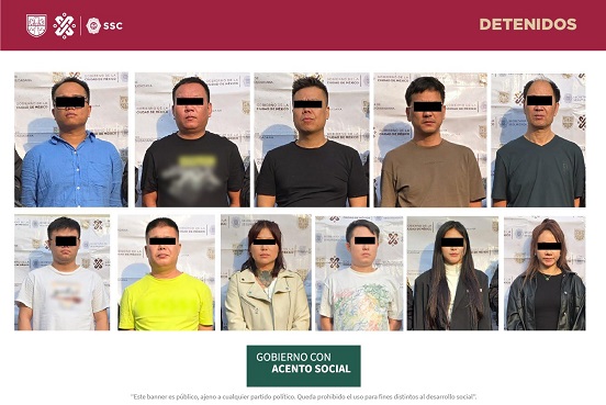 Efectivos de la Secretaría de Seguridad Ciudadana, en coordinación con agentes de la Fiscalía General de Justicia, lograron la detención de ocho hombres y tres mujeres, todos de nacionalidad china, en un inmueble ubicado de la colonia Centro, Alcaldía Cuauhtémoc.
