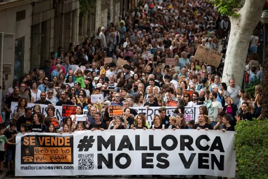 Miles de personas se manifestaron este sábado en la ciudad española de Palma de Mallorca contra el exceso de turismo, una de las principales fuentes de riqueza de la zona, bajo el lema «Mallorca no se vende».