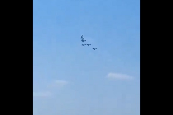 Imágenes compartidas en redes sociales muestran el momento en que uno de los aviones pasa cerca de una formación de seis aeronaves, tocándose en pleno vuelo. Posteriormente, una de las aeronaves inicia una trayectoria descendente hasta estrellarse, provocando una fuerte explosión, mientras que la otra impacta contra el suelo horizontalmente.