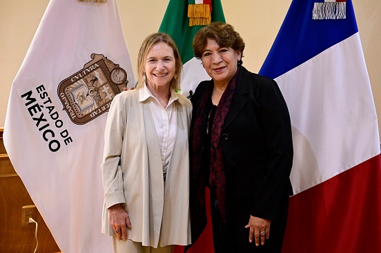 TOLUCA, Estado de México.- La Gobernadora del Estado de México, Delfina Gómez Álvarez recibió en Palacio de Gobierno a la Embajadora de Francia en México, Excelentísima Sra. Delphine Marie Michèle Nicole Borione, con ello inicia una nueva era en las relaciones bilaterales internacionales entre la entidad mexiquense y el país europeo.