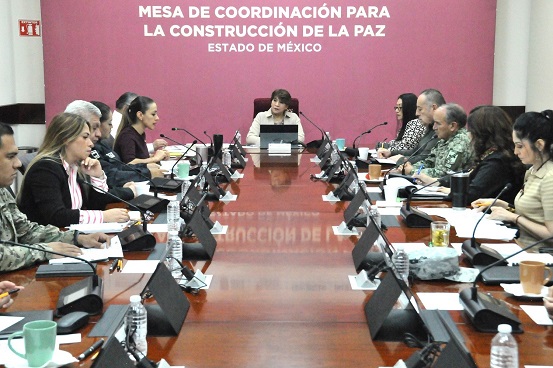 TOLUCA, Estado de México.- La Gobernadora Delfina Gómez Álvarez encabezó la Mesa de Coordinación para la Construcción de la Paz, donde quedó de manifiesto que las estrategias implementadas para brindar seguridad a la ciudadanía han permitido que en el periodo enero-mayo de este año, delitos del fuero común vayan a la baja; en el caso del feminicidio destaca una reducción de 50 por ciento al comparar mayo de 2023 con mayo de 2024.