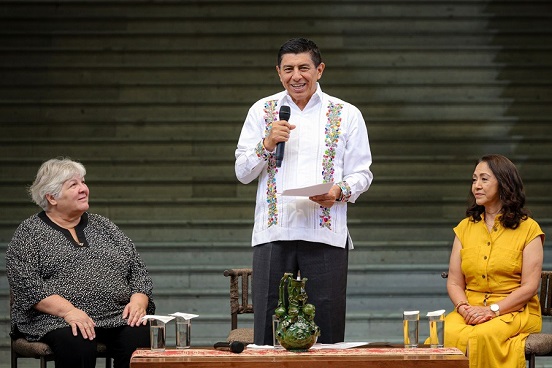 “La historia de América Latina es de las mujeres y hombres que lucharon por la libertad; nuestra tierra ha sido regada con la sangre de los revolucionarios y de aquellos que buscaron a través de la lucha social un mundo más igualitario”, afirmó junto a la Presidenta Honoraria del Sistema DIF Oaxaca, Irma Bolaños Quijano.