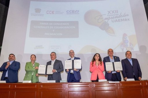 La secretaria de Desarrollo Económico de la entidad, Laura González Hernández; el rector de la UAEMéx, Carlos Eduardo Barrera Díaz; el presidente del Consejo Coordinador Empresarial (CCE), Francisco Cervantes Díaz; y el presidente del Consejo Coordinador Empresarial del Estado de México, Germán Miguel Jalil Hernández, fueron las figuras clave en la firma de los Convenios Generales de Colaboración. Estos acuerdos tienen como objetivo fomentar el desarrollo de actividades conjuntas que promuevan la ciencia y la tecnología entre la comunidad universitaria.