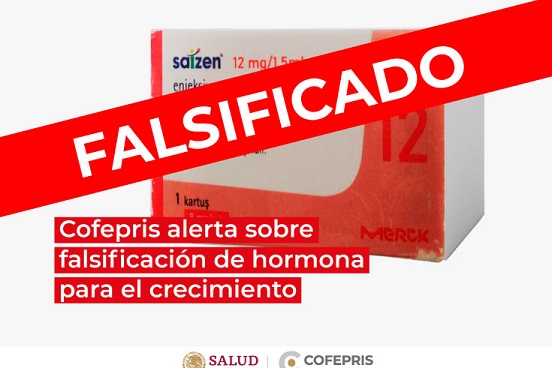 La Comisión Federal para la Protección contra Riesgos Sanitarios (Cofepris) alerta sobre la falsificación de dos medicamentos: Saizen 12 mg/1,5 mL (somatropina), hormona de crecimiento, y su presentación Saizen 20 mg (somatropina).