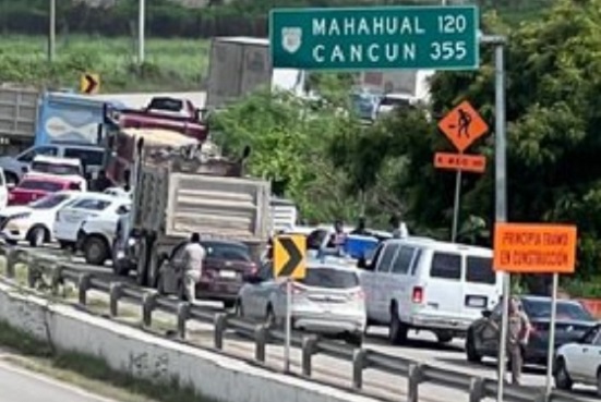 Alrededor de las 10:40 horas, se reporta el cierre en la carretera Xul-Ha-Chetumal, en Quintana Roo.