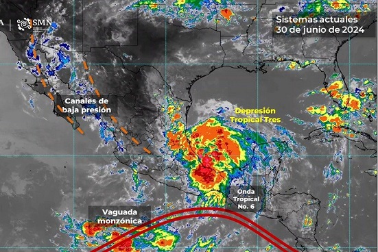 El Servicio Meteorológico Nacional (SMN), organismo dependiente de la Comisión Nacional del Agua (Conagua), informó que la tarde de este domingo se formó la depresión tropical número tres en el Golfo de México.