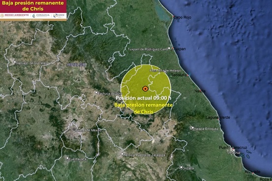 Chris se debilitó hasta convertirse en baja presión remanente sobre territorio mexicano tras haberse dirigido a Puebla, donde se ubica actualmente y luego de haber ingresado por Veracruz como tormenta tropical.