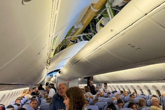 Imágenes que la mujer subió a la plataforma muestran paneles del techo de la cabina rotos, con tuberías y cables visibles. En otra foto se ven los vehículos de emergencia sobre la pista.