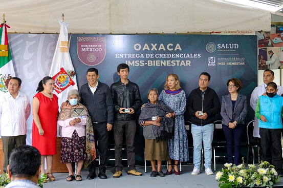 San Sebastián Tutla, Oax.- En cumplimiento a la palabra empeñada por el Presidente de la República Andrés Manuel López Obrador por transformar el sistema de salud en México, el Gobernador Salomón Jara Cruz entregó las primeras 150 credenciales del Programa IMSS Bienestar en la clínica de Salud del Rosario.