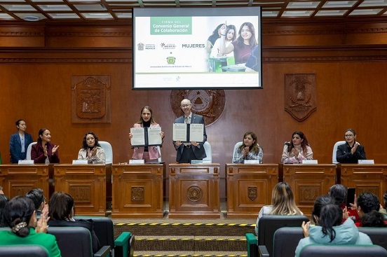 En un esfuerzo conjunto por fortalecer el conocimiento y la profesionalización en temas de derechos humanos y equidad de género, la Universidad Autónoma del Estado de México (UAEMéx) y la Secretaría de las Mujeres del Gobierno del Estado de México firmaron un Convenio General de Colaboración. La firma se llevó a cabo en la sala “Lic. Benito Juárez García” del Edificio de Rectoría de la UAEMéx, evento que contó con la presencia de diversas autoridades académicas y gubernamentales.