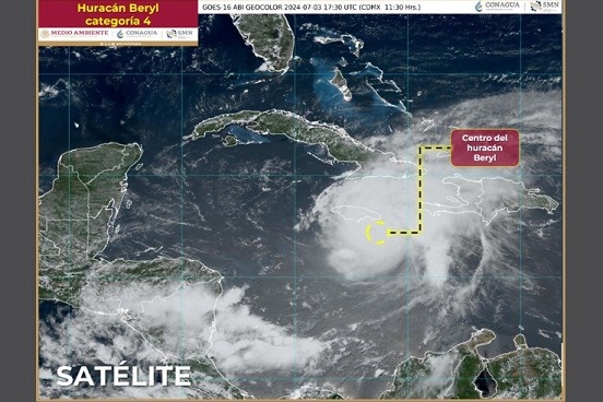 El huracán Beryl se mantiene como categoría 4 sobre el Mar Caribe mientras se acerca peligrosamente a Jamaica, en donde se estima que provocará fuertes rachas de vientos y marejadas ciclónicas «potencialmente mortales», de acuerdo con el Centro Nacional de Huracanes de Estados Unidos.