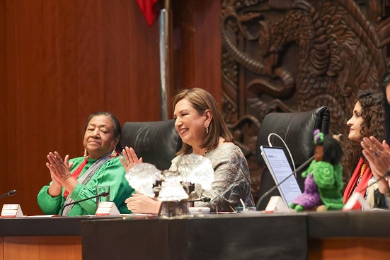 Durante la ceremonia solemne para la develación en el muro de honor de la frase: “A 500 Años los Pueblos Indígenas y Afromexicanos son el Sustento Pluricultural de la Nación”, Gálvez Ruiz afirmó que durante estos seis años, como senadora, logró consensos, prácticamente de manera unánime entre todos los partidos para lograr el bien común.