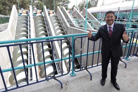 “Nuestro equipo realizó un trabajo muy detallado en tres aspectos fundamentales: en lo que llamamos el rebombeo Piraña, el rebombeo Piraña que se encuentra 2 kilómetros más al sur, a 2 kilómetros de distancia de esta planta; el rebombeo de Lumbrera 7, sitio en el que nos encontramos; y en el desazolve de Canal de Chalco. En total instalamos siete bombas tipo tornillo; las siete bombas son iguales; cinco aquí, dos en la planta que está en la confluencia con la calle Piraña. Se colocaron rejillas de retención de sólidos, se desazolvaron 3 mil 500 metros cúbicos y se limpiaron y rectificaron 32 mil metros cuadrados”, detalló.