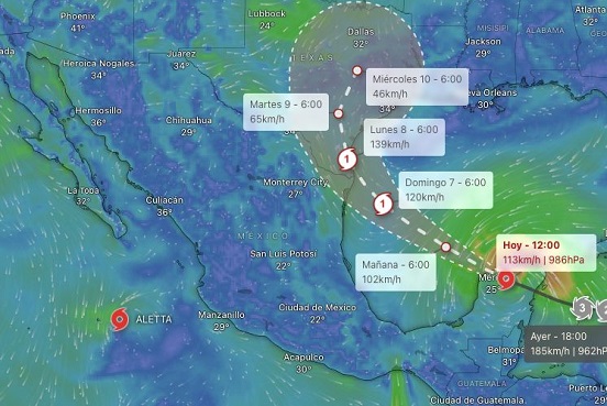 Durante el sábado avanzará sobre el Golfo de México y en la madrugada del domingo se enfilará para tocar tierra, con lo que habrá cierto acercamiento hacia Tamaulipas, para después virar hacia el norte e ingresar a Texas, en Estados Unidos.