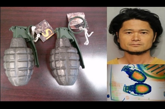 Akito Fukushima, de 41 años, fue arrestado bajo sospecha de amenaza terrorista en primer grado, después de que durante un control de rayos X se detectaran objetos parecidos a granadas. La terminal del aeropuerto de la ciudad de Hilo fue evacuada el martes, mientras que un equipo antibombas examinaba los objetos sospechosos, informó la policía en un comunicado.