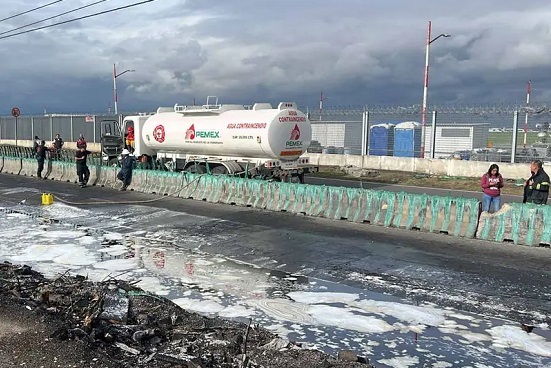 Ante esta emergencia, elementos del Cuerpo de Bomberos del Estado de México llegaron a l lugar y aplicaron una solución espumógena para cubrir la sustancia y evitar accidentes.