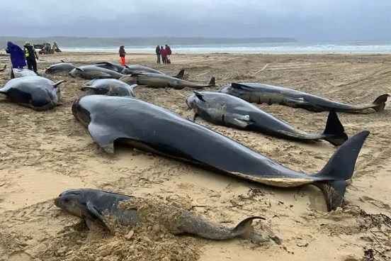 Los rescatistas encontraron a «unos 77 animales en la playa, claramente varados desde hace varias horas. Lamentablemente, solo 12 aún estaban vivos», indicó la asociación British Divers Marine Life Rescue en un comunicado.