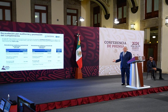 Hasta mayo de 2024, la administración ha obtenido 3.3 billones de pesos por este concepto como resultado de la participación de grandes, medianos y pequeños contribuyentes y de no permitir la condonación de impuestos en el Gobierno de la Cuarta Transformación.