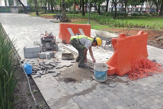 Las acciones incluyen la restitución de 300 metros cuadrados de piso de mármol y la colocación de 272 metros de tubería para arriates en jardineras; además del mejoramiento de áreas verdes, preservación de las 12 fuentes y de 575 luminarias. Simultáneamente, la alcaldía Cuauhtémoc intervendrá la zona donde se ubican los módulos sanitarios.